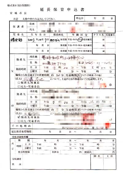手書きのものが、毎年更新され、親も毎年同じような書類を書かされる。